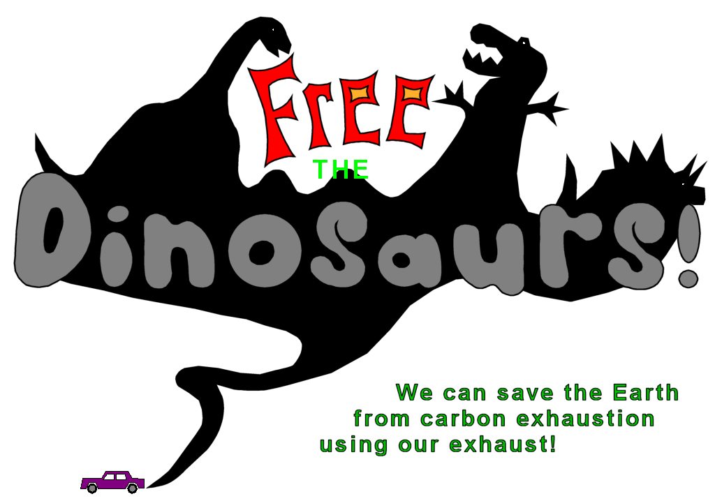 Mother Earth has shown her ability to sustain life for millions of years. Unfortunately, gravity may be too powerful even for Mother Earth. There are no microbes, insects, animals, or plants that are moving useful amounts of carbon from the fossil fuel reservoirs back into the ecosystem. Evolutionary forces have not created a species which can, through its natural life cycle, return carbon to the ecosystem, but, perhaps, if we try a little harder, and care a little more, we can help Mother Earth where she wasn't able to help herself. Together, we can help, "FREE THE DINOSAURS!" |